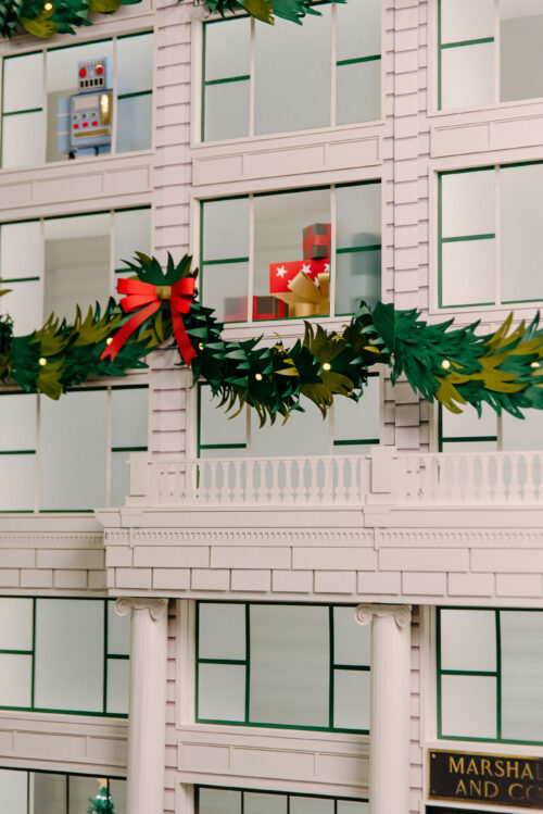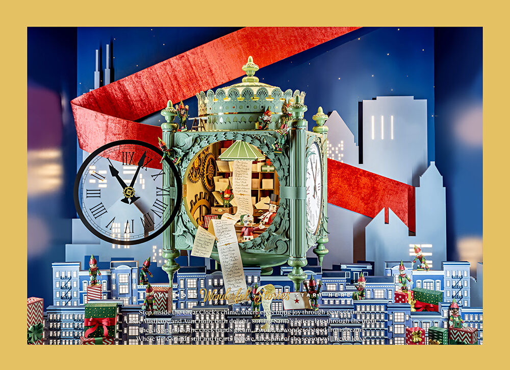 Это чувство радости переходит в дань уважения золотому веку рождественских витрин 1940-х и 50-х годов. Здесь представлен стилизованный фасад на Стейт-стрит, украшенный миниатюрами, которые напоминают о любимых классических произведениях, таких как «Щелкунчик» и «Рождественская история». Это отсылка к временам, когда праздничные витрины стали культурным ритуалом — чем-то, вокруг чего семьи год за годом планировали свои выходы в свет.