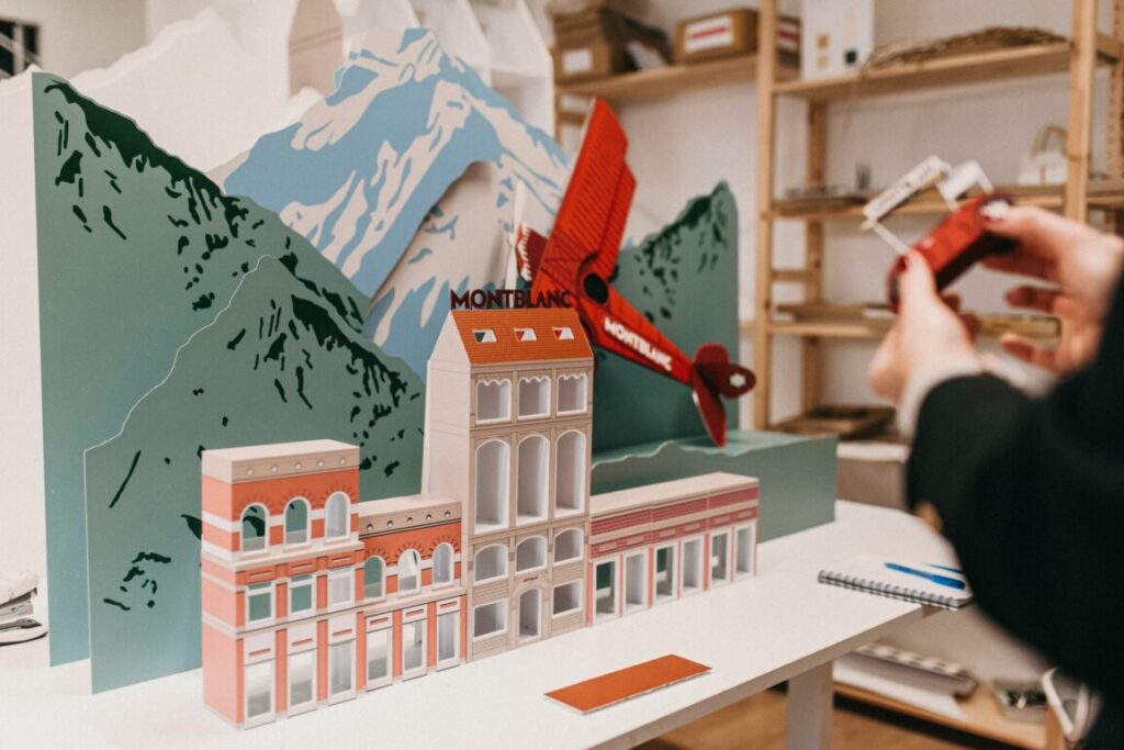 Креативная концепция Edinas Paper основана на одной запоминающейся идее — путешествии письма. На каждой из 400 витрин представлено созданное из бумаги транспортное средство — автомобиль, поезд или самолет, — перевозящее письмо по миниатюрному миру. Эти истории разворачиваются на фоне переосмысленного мира Montblanc, построенного полностью из бумаги. В результате получилась поэтическая картина, которая передает движение, эмоции и наследие с помощью сложного повествования из материалов. «Речь шла не только о дизайне окон, но и о том, чтобы рассказать историю с помощью материалов, — объясняет команда Edinas Paper. — Каждый изгиб, складка и тень были тщательно продуманы, чтобы вызвать эмоции, ощущение наследия и движение».