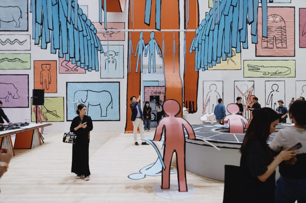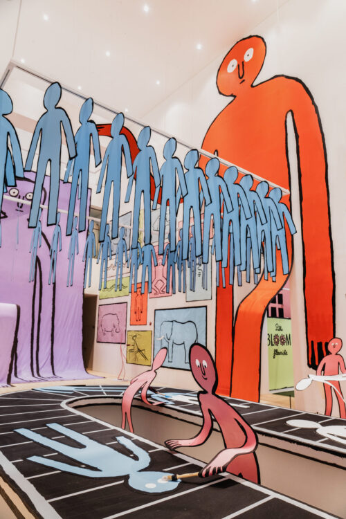 Эти вырезанные фигуры, превышающие человеческий рост, появлялись в галереях и универмагах, от токийского музея Parco до парижского Le Bon Marché, где гигантские фигуры из синей бумаги карабкались по атриуму. Их плоская форма становится их очарованием — словно его рисунки из альбома перенеслись в реальный мир. «Мне очень нравится это ощущение, будто рисунок перебрался в наш мир», — объясняет сам Жюльен.