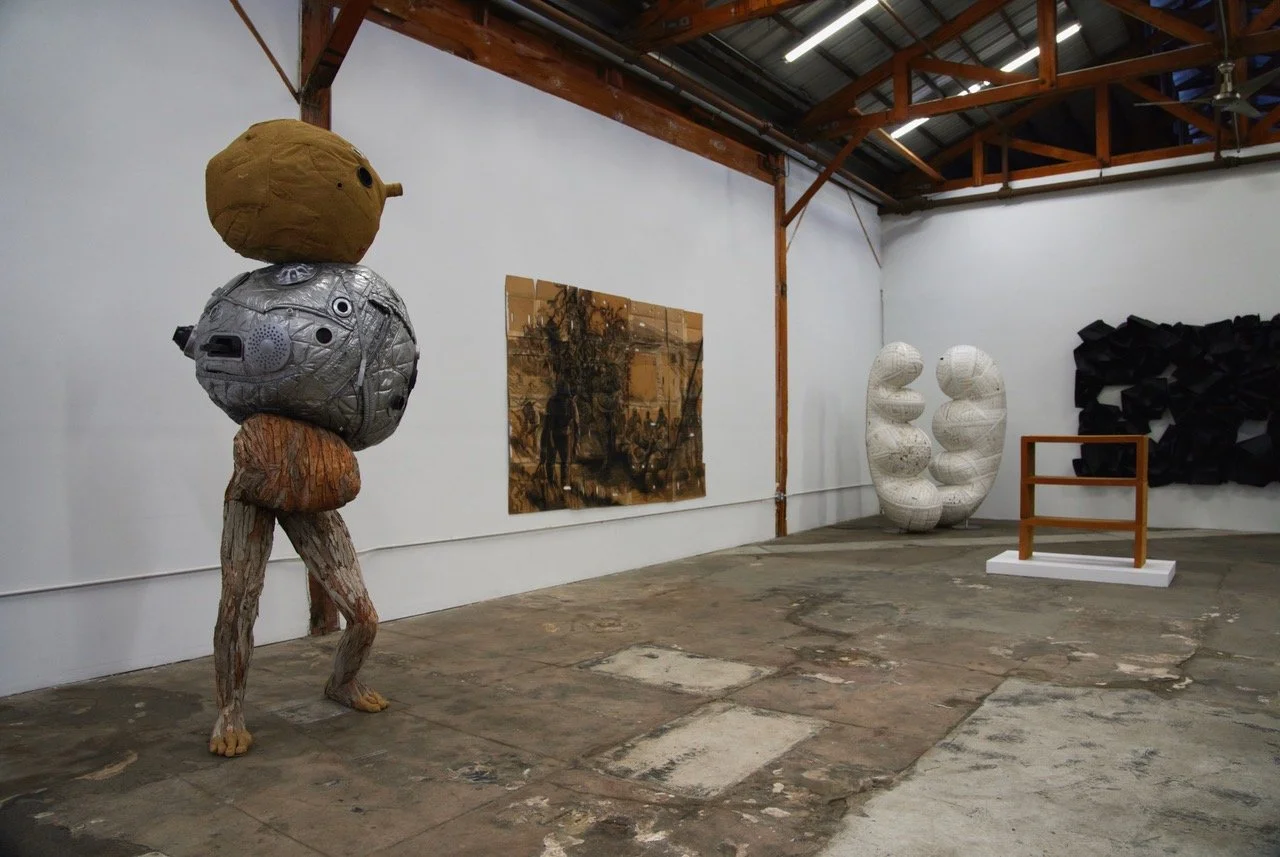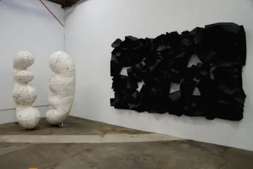 Среди других представленных художников — Сигэру Бан (Токио), чья экологичная архитектурная практика предполагает использование картонных труб для создания быстровозводимых укрытий, что стирает грань между искусством, дизайном и гуманитарной архитектурой. Джоди Хейс (Нэшвилл) и Эдгар Рамирес (Лос-Анджелес) манипулируют картоном, накладывают его слоями и раскрашивают, создавая настенные работы с богатой текстурой, которые балансируют между живописью и скульптурой. Нарсисо Мартинес (Лос-Анджелес) представляет работы, выполненные тушью и углем на найденном картоне, которые напрямую связаны с трудом, миграцией и жизненным опытом. Леони Вебер (Бруклин) превращает мятый и окрашенный картон в композиции, напоминающие о текстильных традициях. Выставку дополняют работы Самуэля Ричардсона (Лос-Анджелес), Майкла Штутца (Сан-Диего), Эктора Дионисио Мендосы (Салинас) и Джебилы Оконгву (Рим), каждый из которых предлагает свой подход к изменению физического и концептуального потенциала картона.