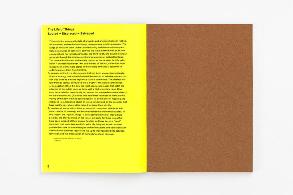 Каталог «Жизнь вещей» (в оригинале «Das Leben der Dinge») сопровождает выставку «Жизнь вещей: разграбленное – перемещенное – спасённое», представленную Художественным музеем Лентос (Линц, Австрия) в курортном городке Бад-Ишль (Зальцкаммергут, Верхняя Австрия) в рамках выставки «Культурная столица Европы – Бад-Ишль, Зальцкаммергут 2024» (the European Capital of Culture Bad Ischl Salzkammergut 2024). Выставка представляет современные взгляды на судьбу произведений искусства и артефактов в контексте разграбления, вывоза и реституции, исследуя вопросы памяти, справедливости и культурной идентичности.